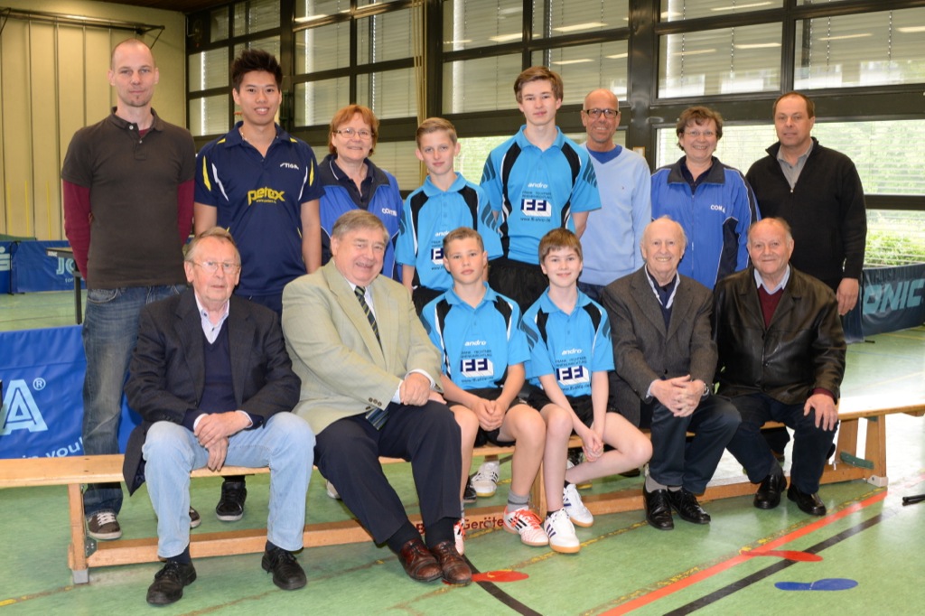 Aktuelles Beispiel dafür ist die derzeitige 1. Herrenmannschaft des TTC. Alle Spieler stammen aus der eigenen Schüler- und Jugendarbeit. Der 16-jährige Nico Fechtner steht momentan erfolgreich als Jüngster im Team. Ihm gegenüber Wolfgang Mylius, der vor mehr als 40 Jahren als Schüler die ersten Bälle über das Netz geschlagen hat und auch heute noch die Erste verstärkt. Damals wie heute war es Erwin Schmelzl, der die Jugend betreute. Ein Name, der untrennbar mit dem Verein verbunden ist.