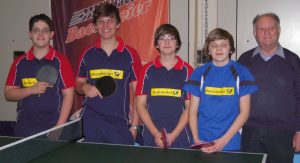 vlnr: Jürgen Hausmann, Andreas Herrmann, Johannes Holler, Maxi Wasmeier, Betreuer Erwin Schmelzl