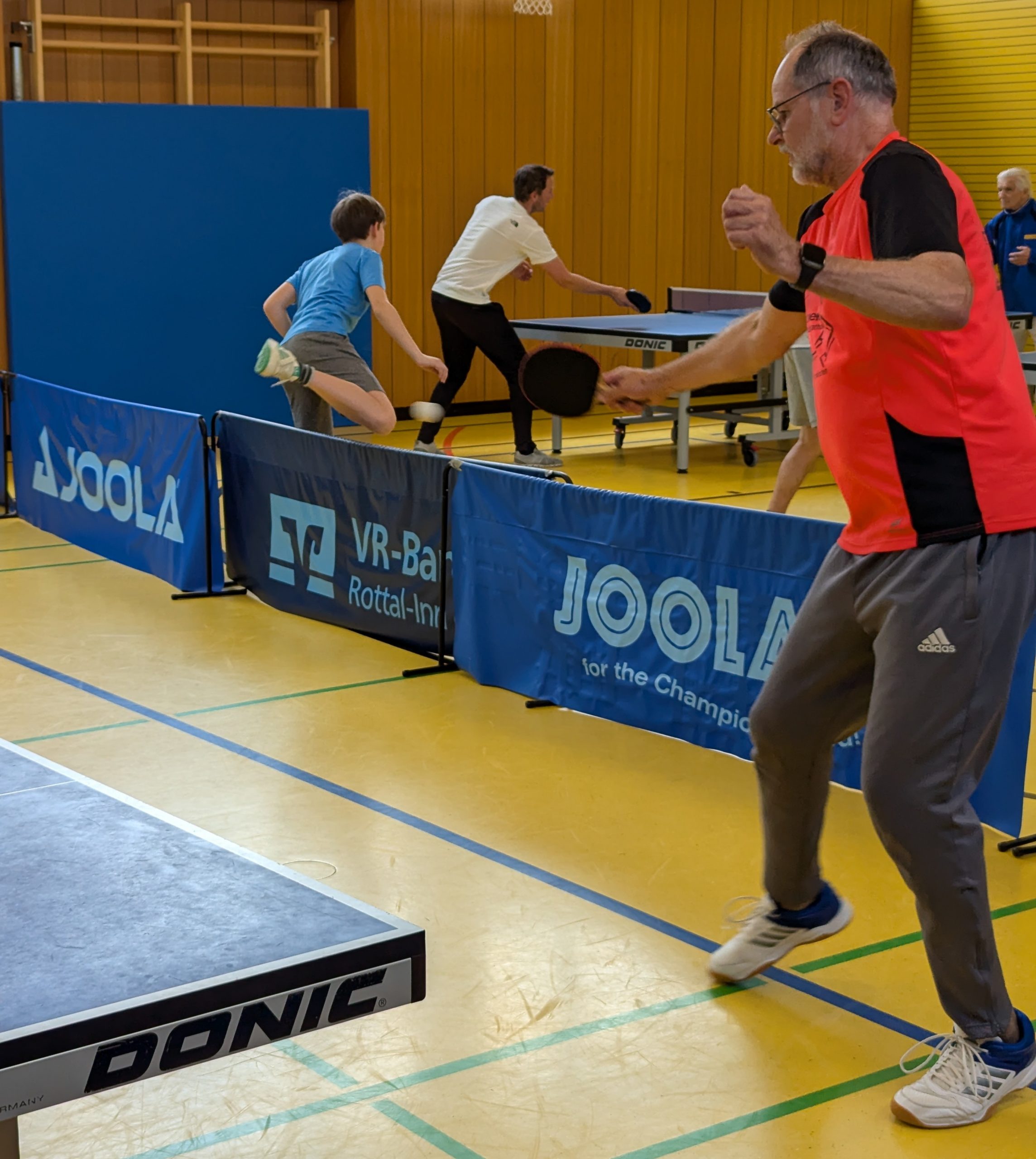 Das größte Teilnehmerfeld gab es bei den Hobbyspielern. Aus zwei Vorrundengruppen qualifizierten sich Hans Irl und Jakob Ganghofer für das Finale. Hier setzte sich dann Ganghofer mit 2:1 Sätzen durch. Als besonderes Schmankerl gab es noch ein Generationendoppel, wo am Ende das „erfahrenene“ Duo Irl/Nau gegen das Jugendteam Nussbaumer/Gashi die Oberhand behielt.